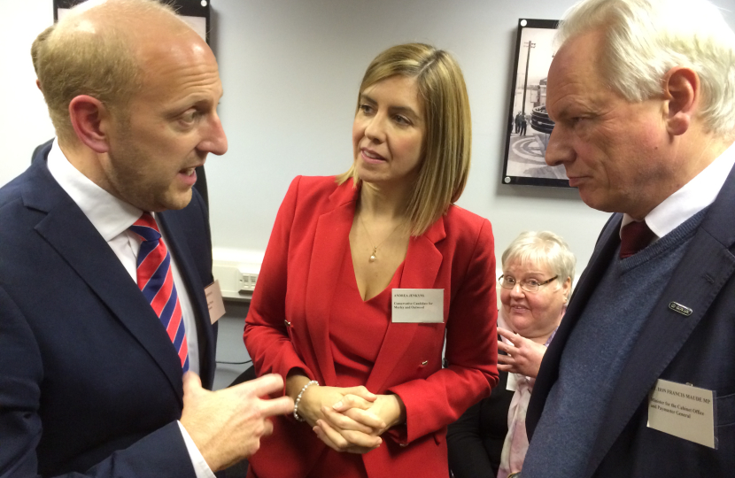 Cabinet Office Minister Francis Maude addressed a meeting of the Morley and Outwood Business Association (MOBA), organised by parliamentary candidate Andrea Jenkyns, hosted by Morley firms Archbold Logistics and Shopbox. At the event Andrea launched her business and skills survey, an online survey designed to find out what skills local employers are looking for.